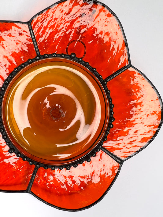 70's Orange and Gold Stainedglass Flower Suncatcher
