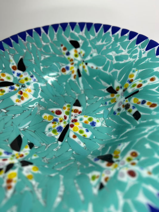 SALE: One of kind Mosaic Chirpy bird fused glass bowl