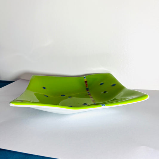 SALE: Millefiori small square dish - Green with Bee feature