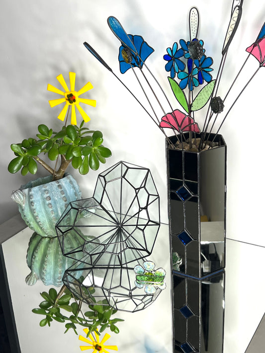 SALE: Large Dragon Tooth Leadlight Glass Terrarium