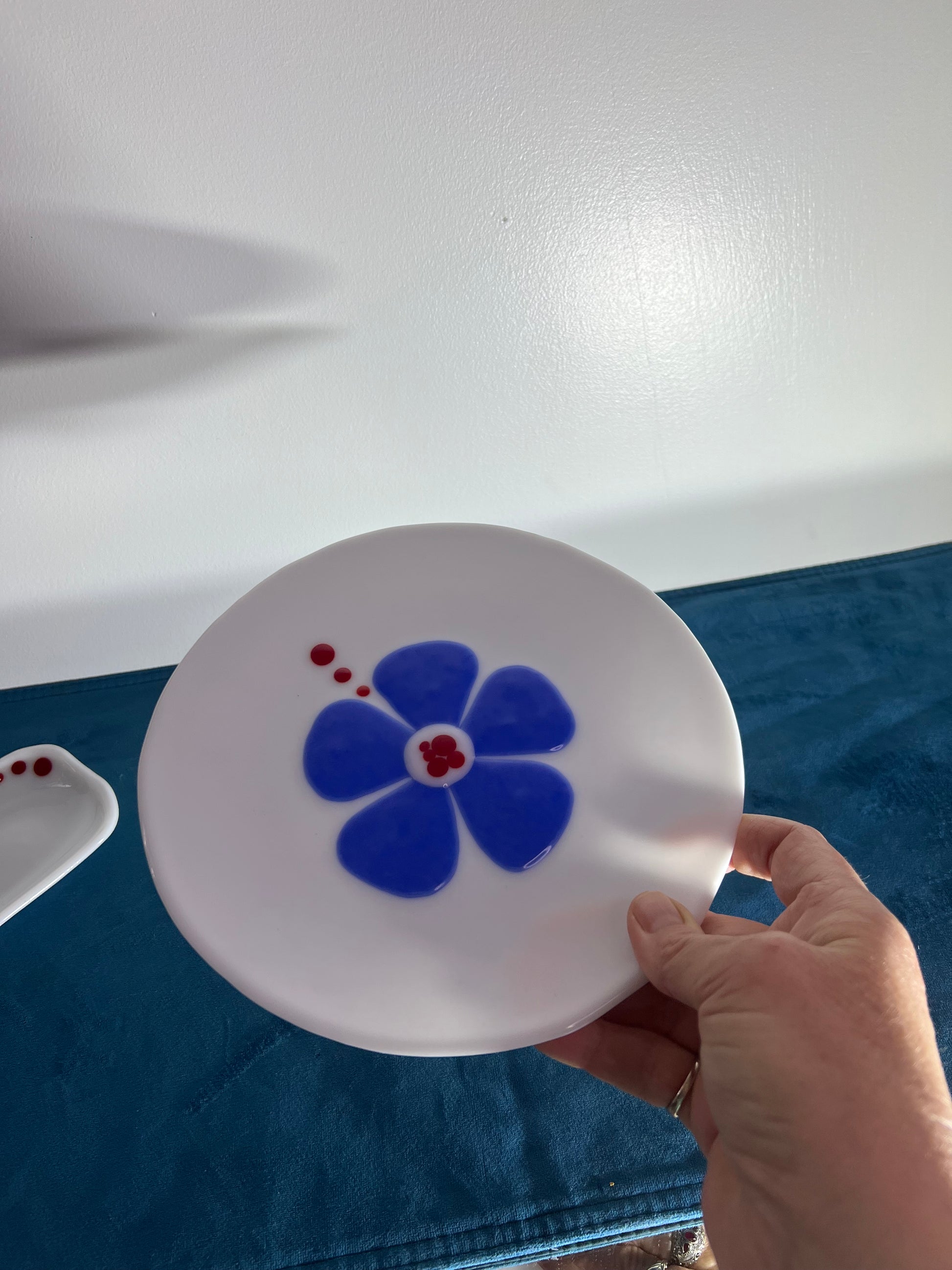This saucer was made to go with the 3 Flower Platter but its gorgeous just on its on. 20cm diameter