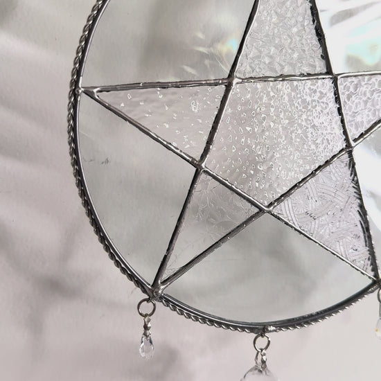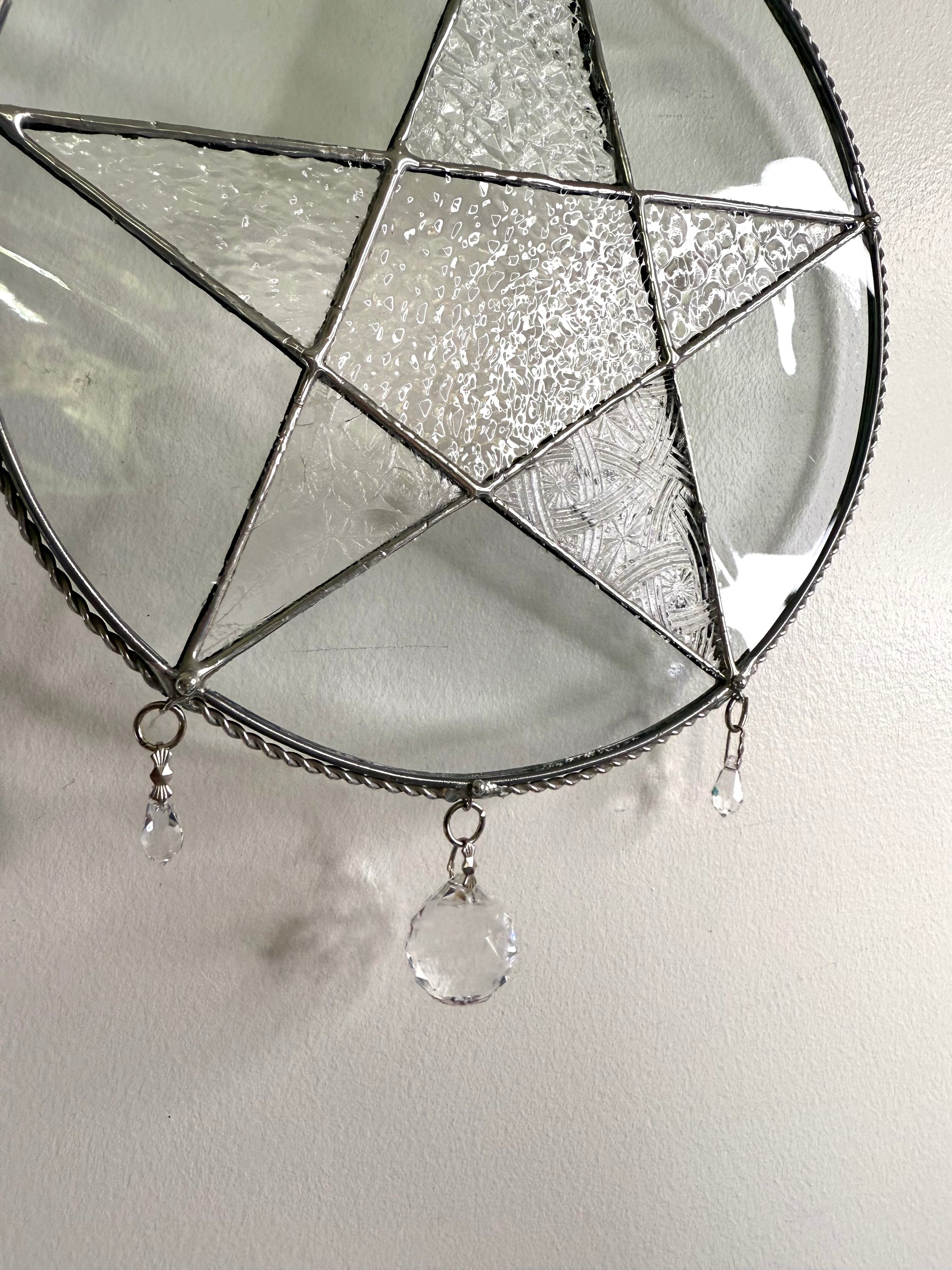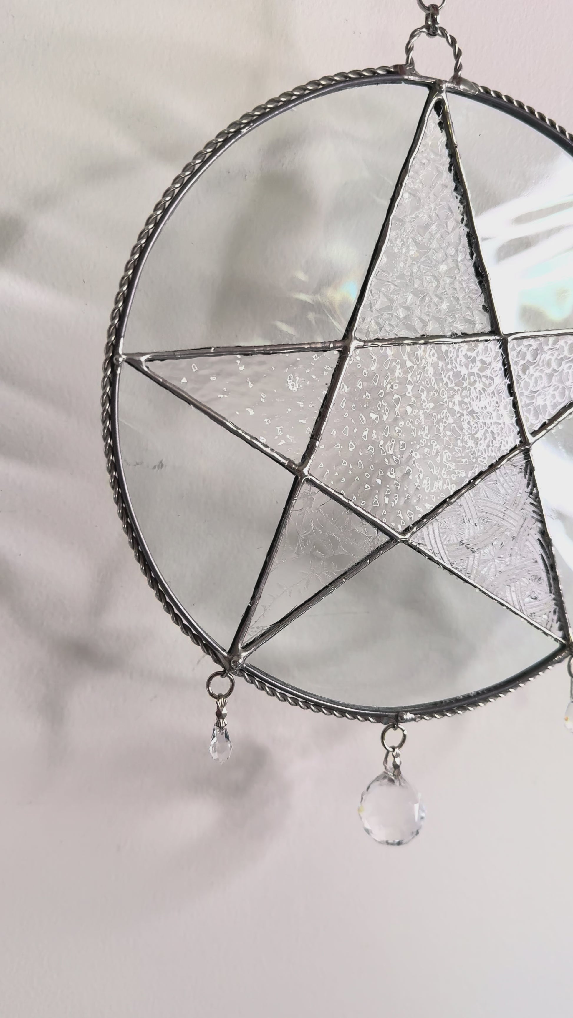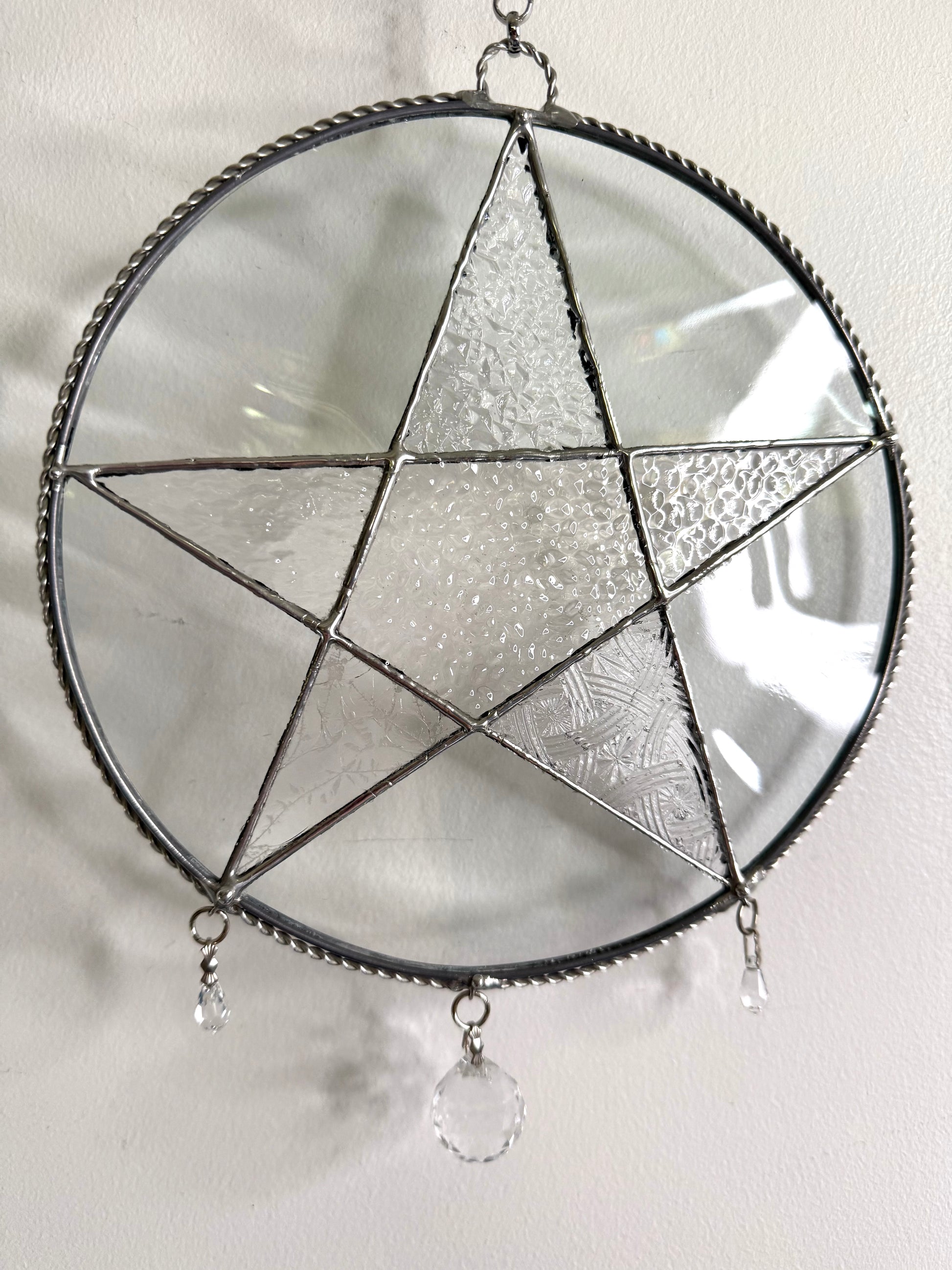 Stainedglass 5 Pointed Star with Swarovski crystal hangers - 18cm diameter