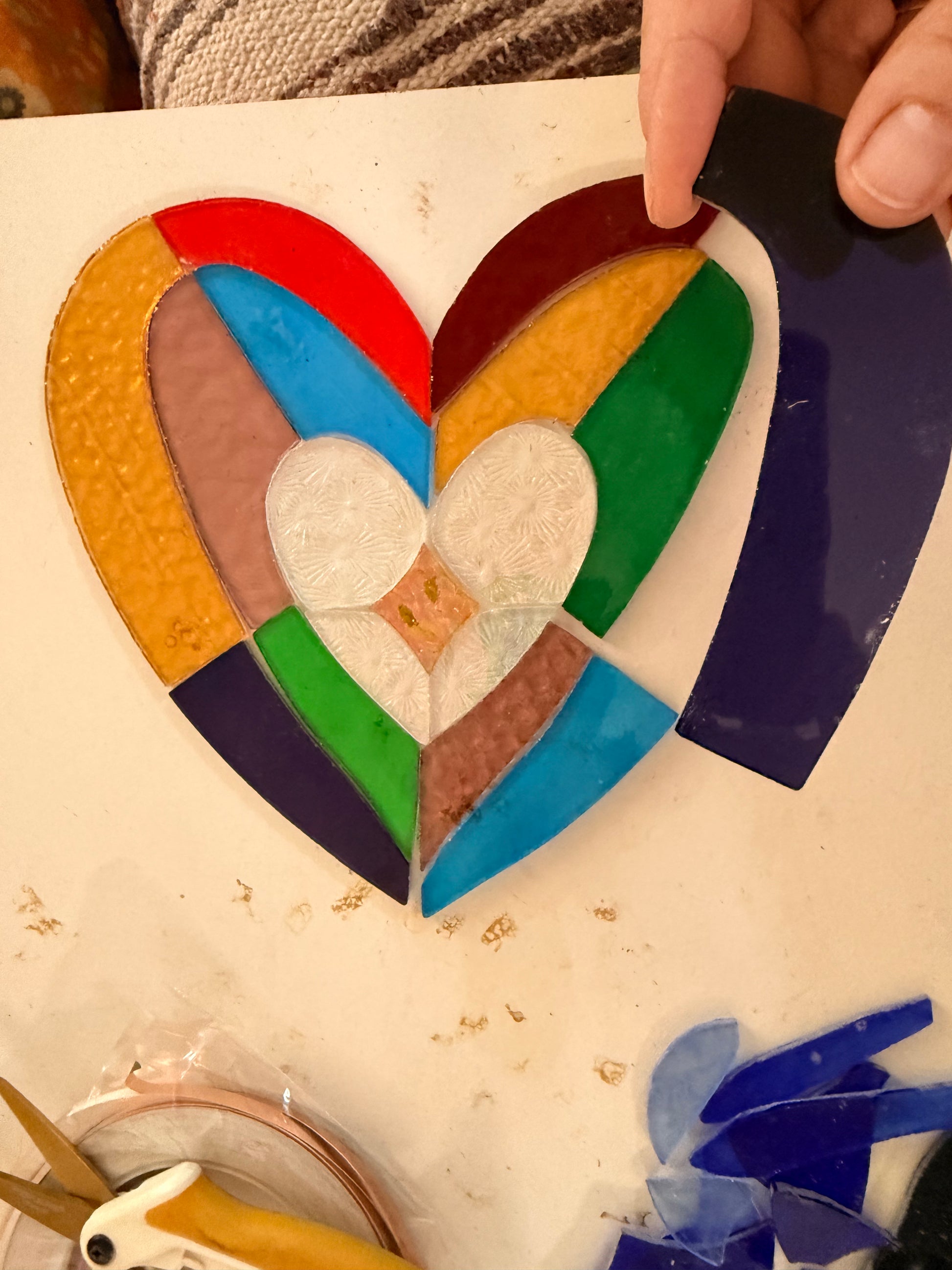 Stainedglass colourful Heart with lovely golden iridised centre. More pictures to follow 19x21cm