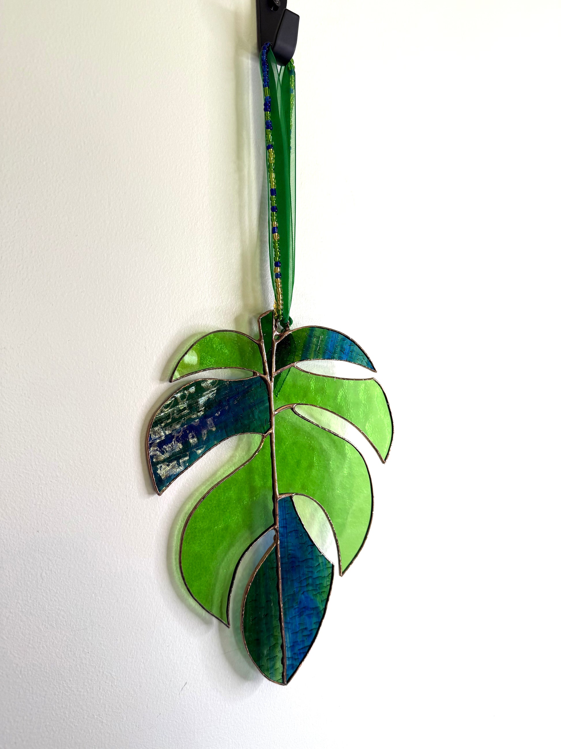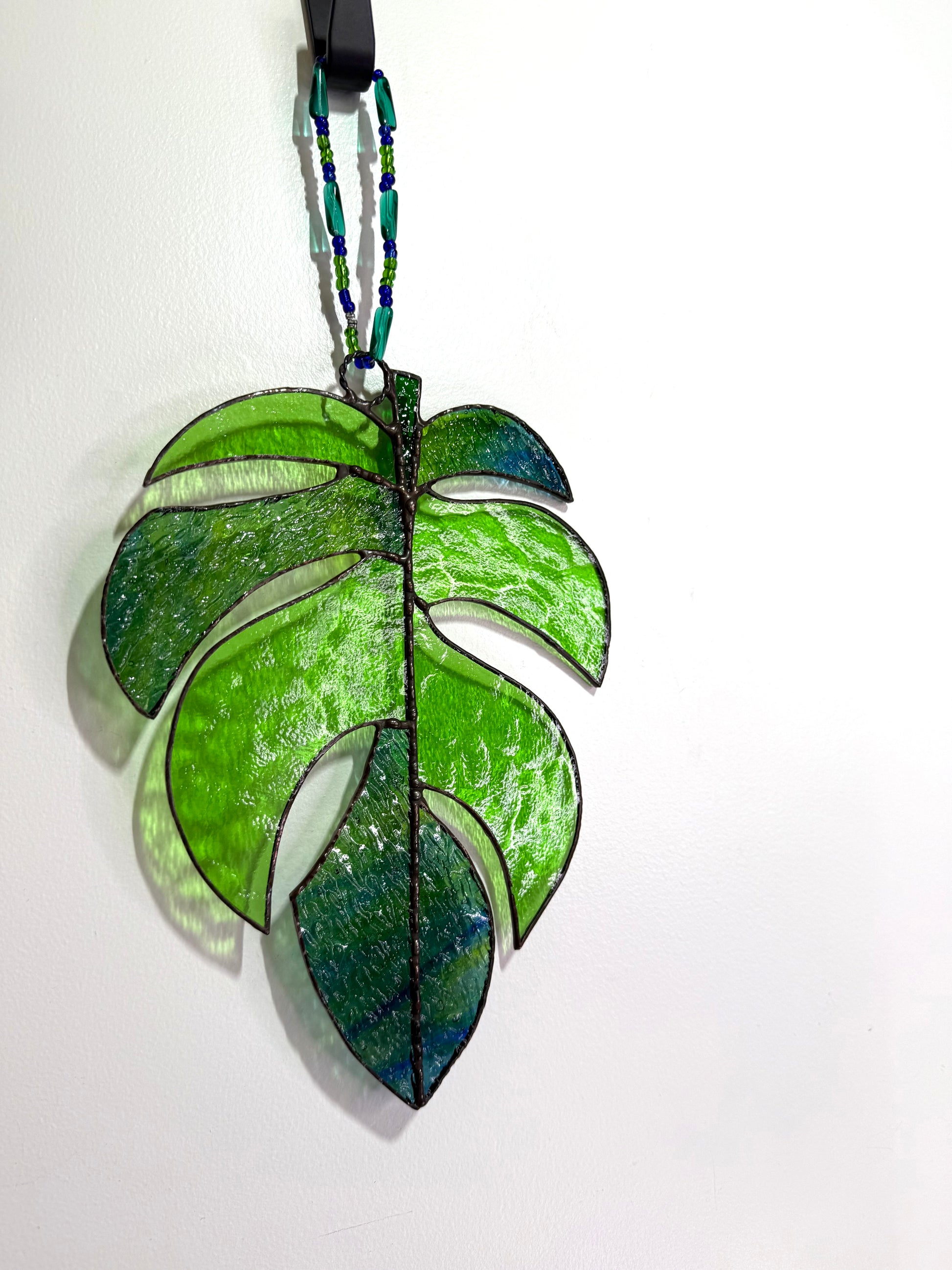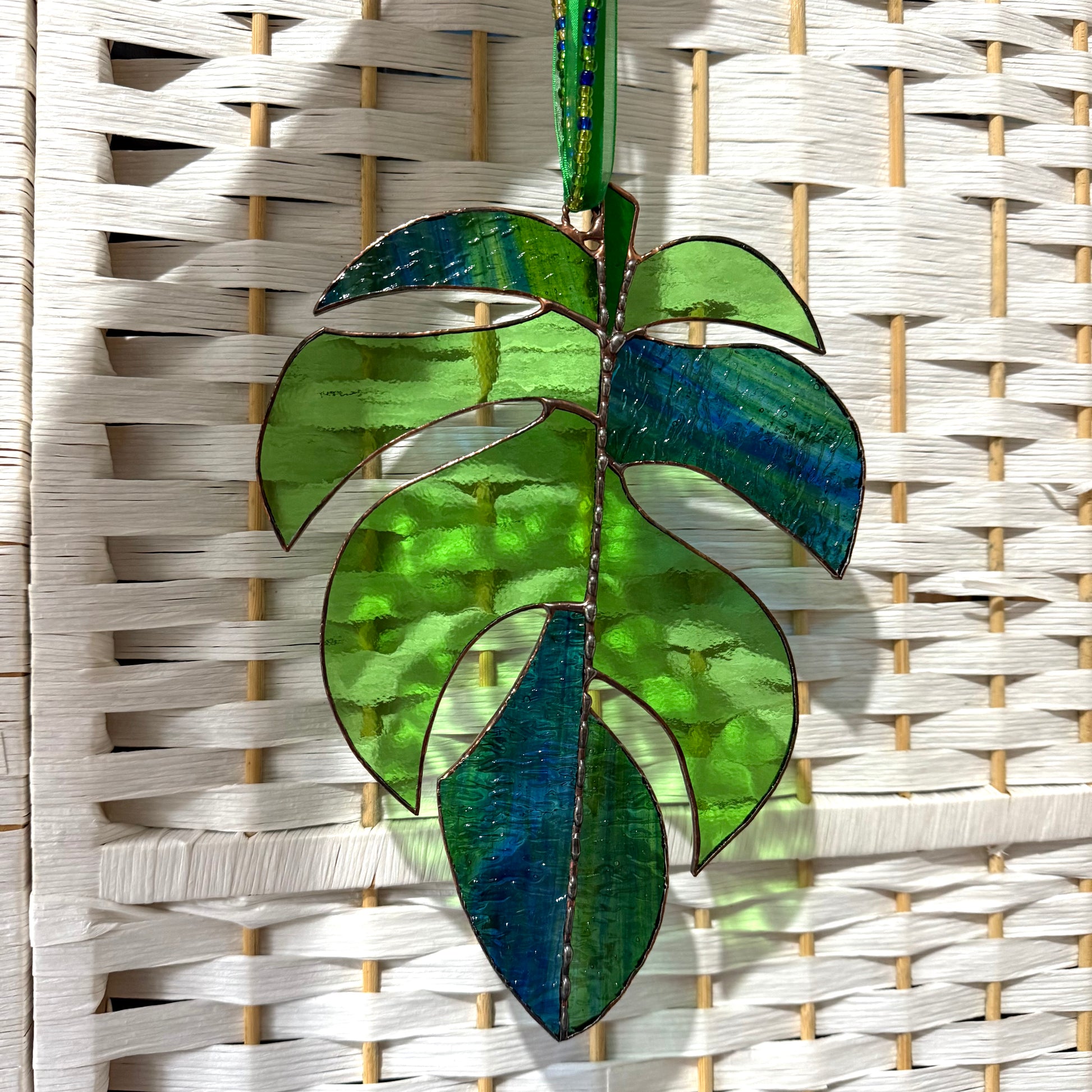Handcrafted Stainedglass Leafy green suncatcher - Leaf Window Ornament & Home Decor