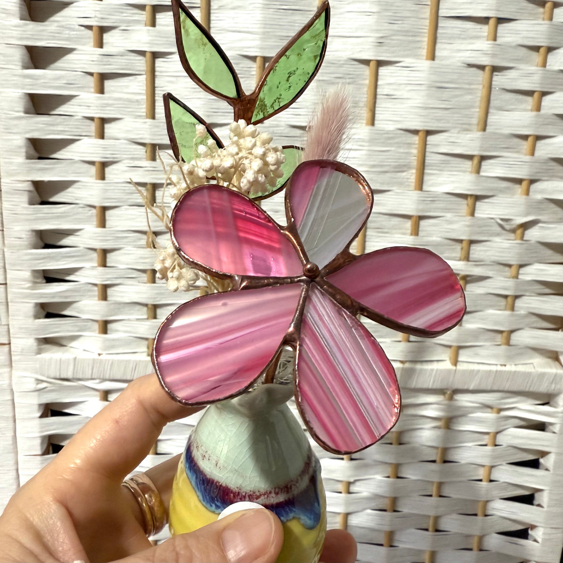 Perfect little vase of stainedglass flowers. Each one is handmade and uniquely different. I never make it exactly the same. You will see differences in colour, but the general design doesn't change. These flower bouquets are not just decorations they are heirloom pieces that can be treasured for years to come.