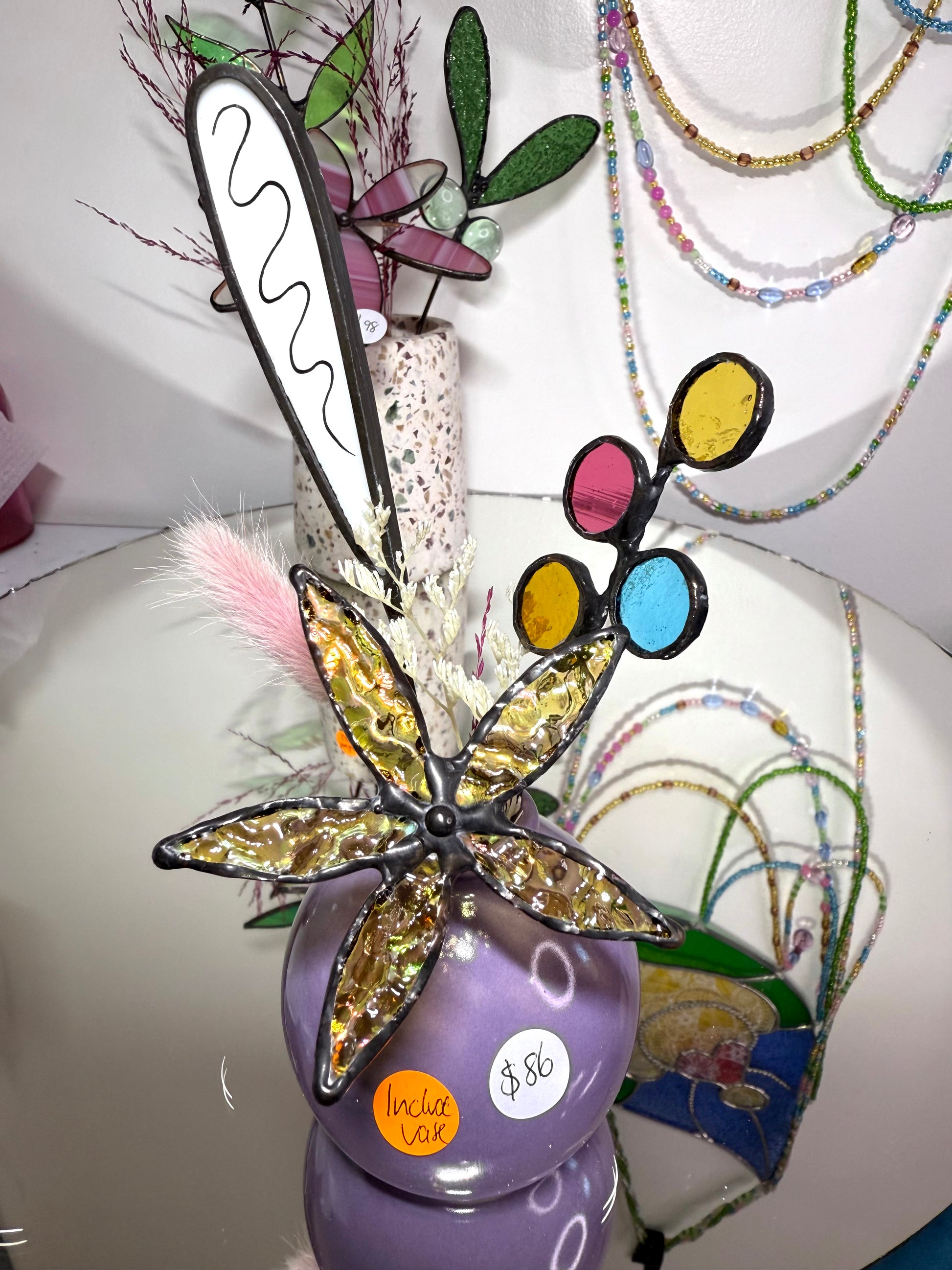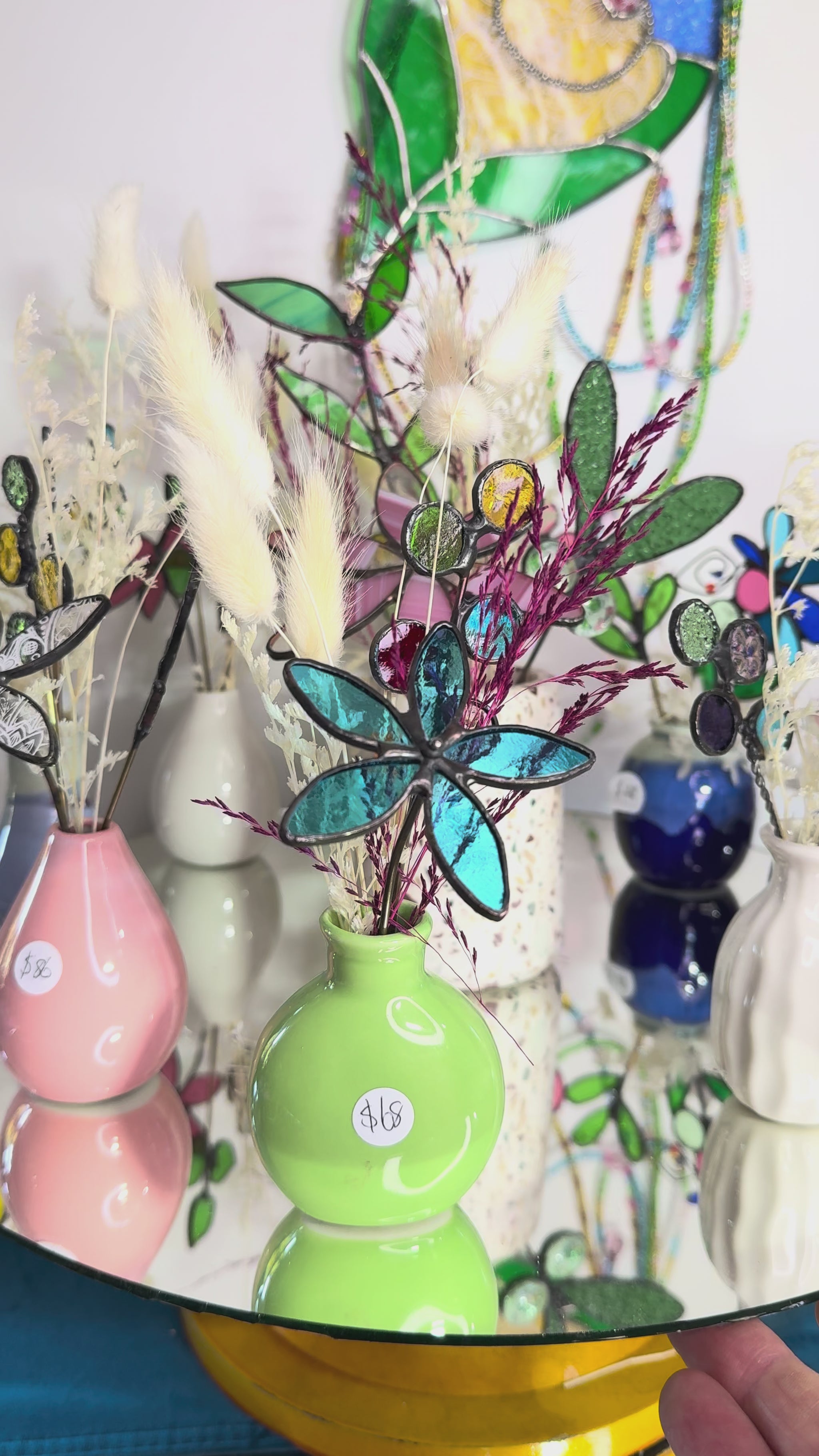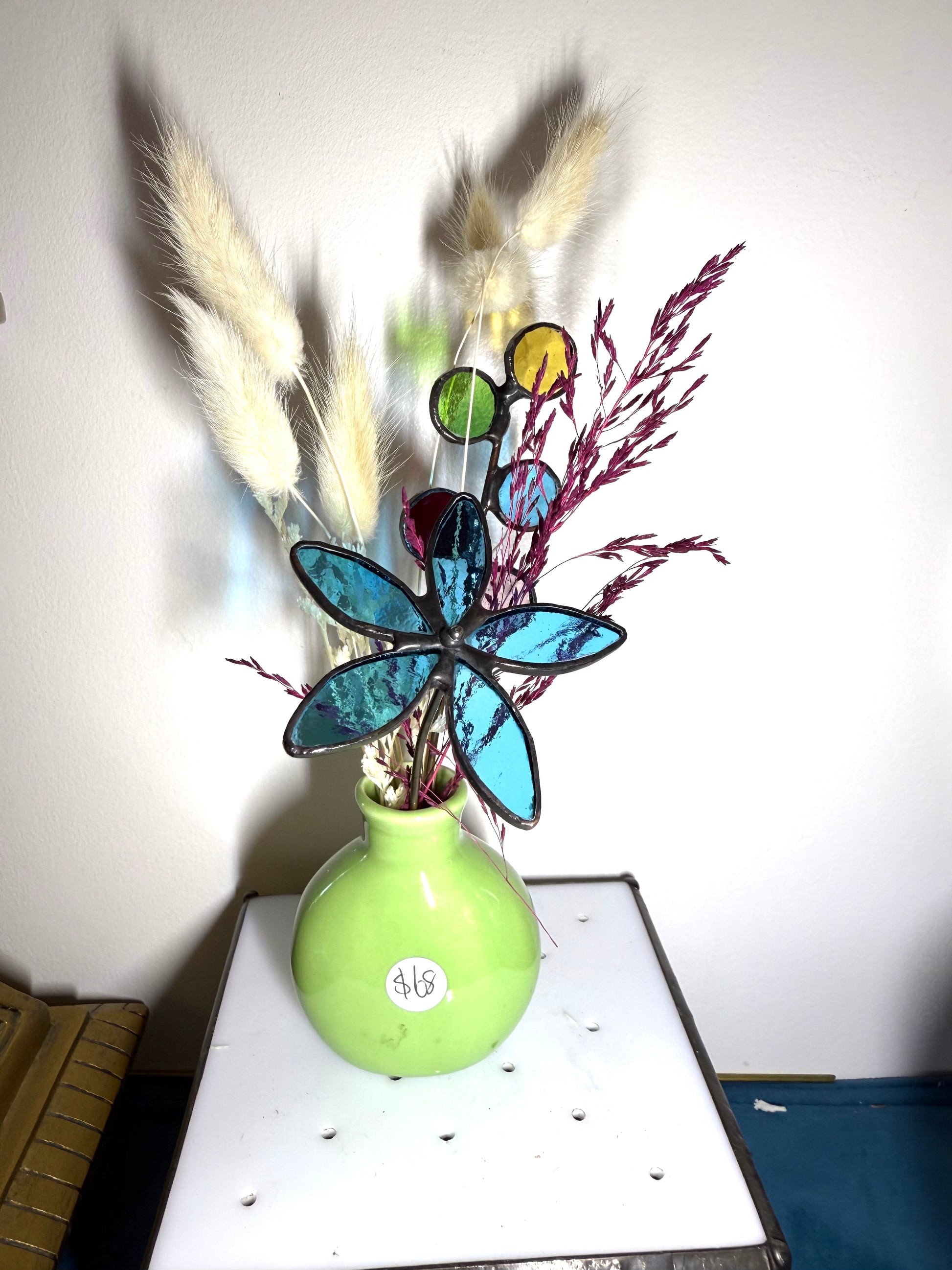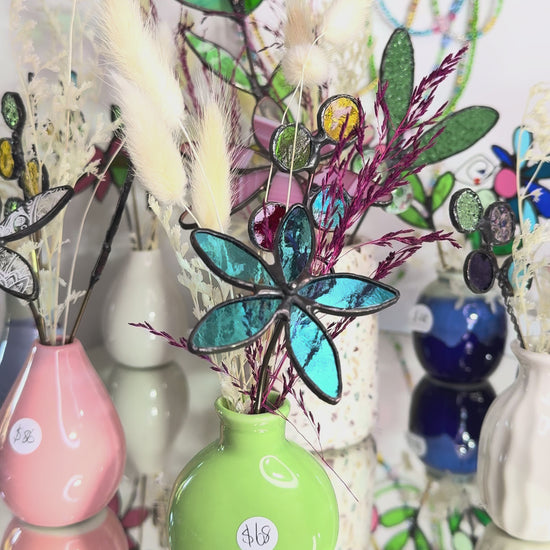 Perfect little vase of stainedglass flowers. Each one is handmade and uniquely different. I never make it exactly the same. You will see differences in colour, but the general design doesn't change.